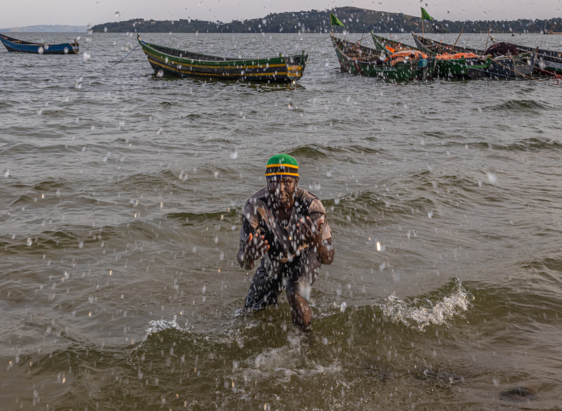 Ce soir là, nous bivouaquons au bord du lac Victoria, près d'un village de pêcheurs, qu'un jeunes nous fait visiter.