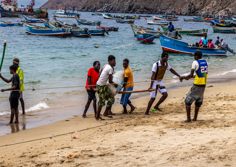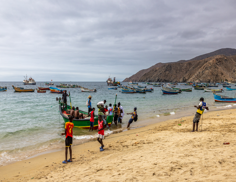 Le port de pêche de Lucira nous accueille pour une nuit paisible. Cette petite bourgade côtière vit au rythme de la mer : les barques colorées alignées sur la plage, les pêcheurs qui réparent leurs filets au coucher du soleil.