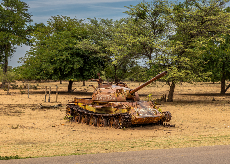Au fil du trajet, apparaissent quelques vestiges de la guerre civile, achevée il y a maintenant vingt-quatre ans.
