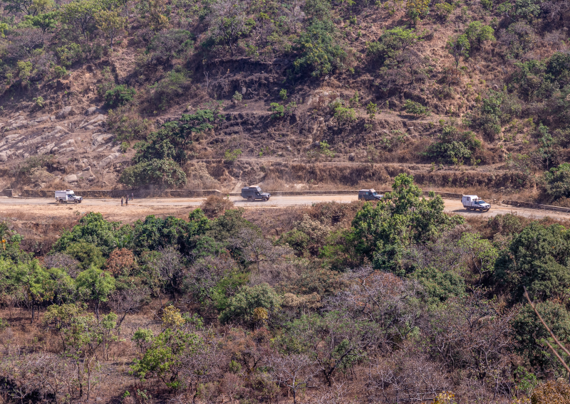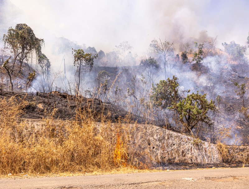 La montagne brûle jusqu’au bord de la route, sans aucune précaution particulière.