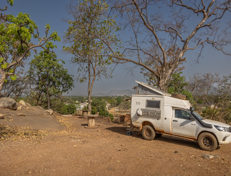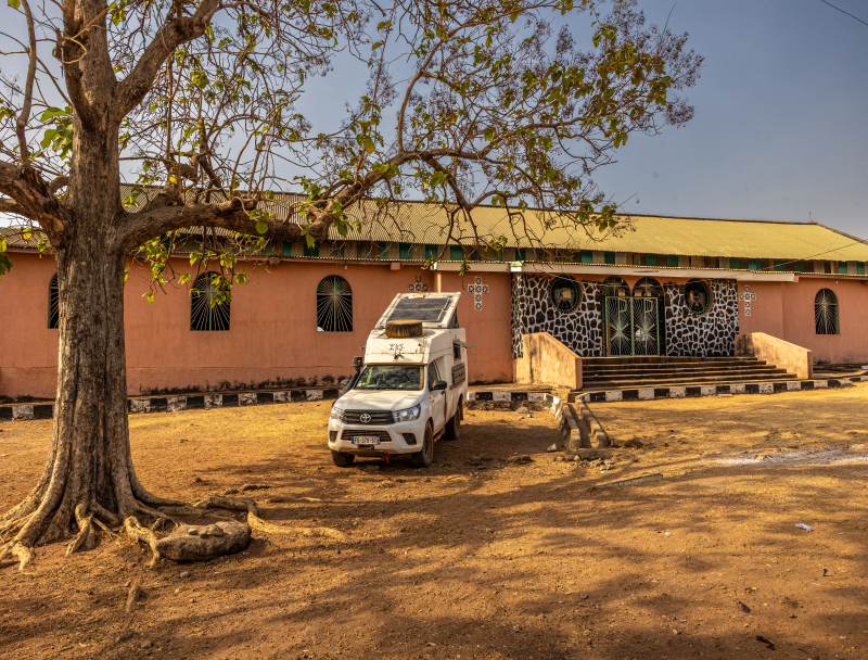 Premier bivouac au Nigeria, derrière une cabane qui nous dissimule de la route.