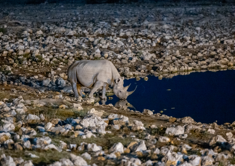 Dans chaque lodge, il y a un trou d'eau aménagé avec des observatoirs ouverts toutes les nuits.