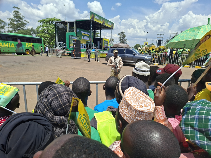 Après une recherche sur Google, nous apprenons que la chef d'état actuelle "Chagua Samia" vient faire campagne pour sa réélection (sans opposant !).