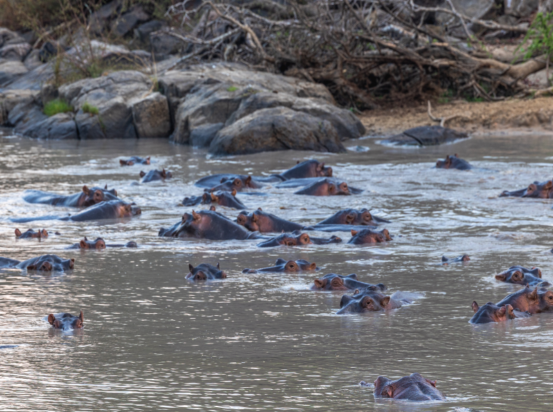 Le camping donne sur ne rivière pleine d'hyppopotames