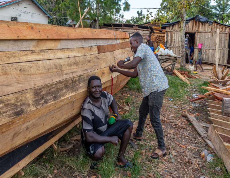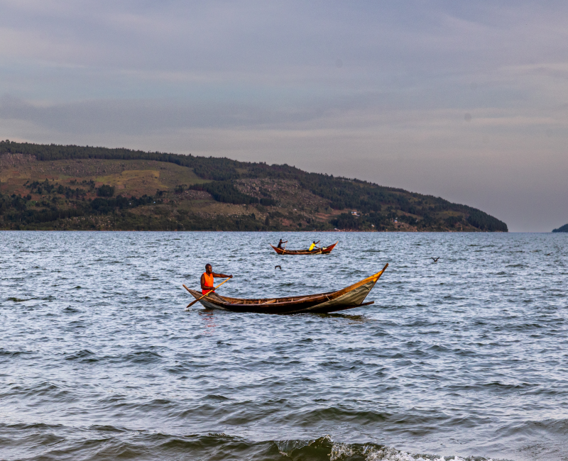 Ce soir là, nous bivouaquons au bord du lac Victoria, près d'un village de pêcheurs, qu'un jeunes nous fait visiter.