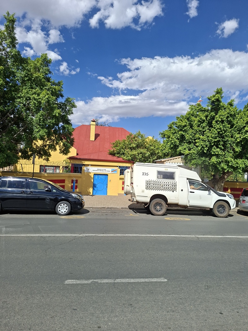 Lundi après-midi, embassade de RDC à Windhoek, nous venons de déposer notre dossier de demande de visa.