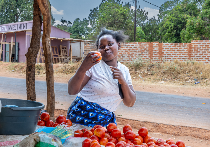 Nous venons d'acheter des oeufs et de tomates, nos deux vendeuses se prêtent volontiers à la photo.