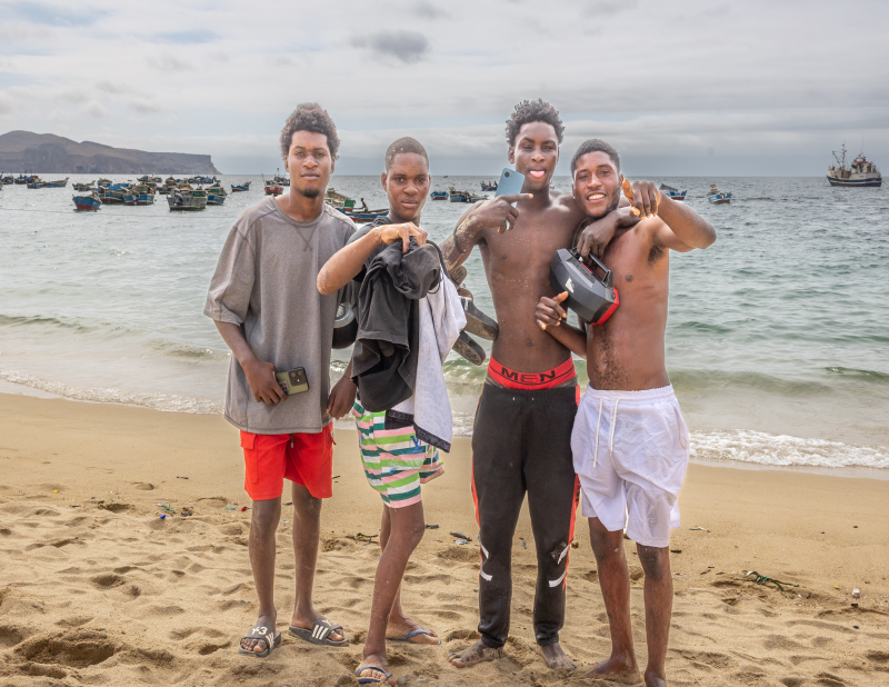 Quatre jeunes se sont approchés, curieux et souriants, souhaitant se faire photographier.