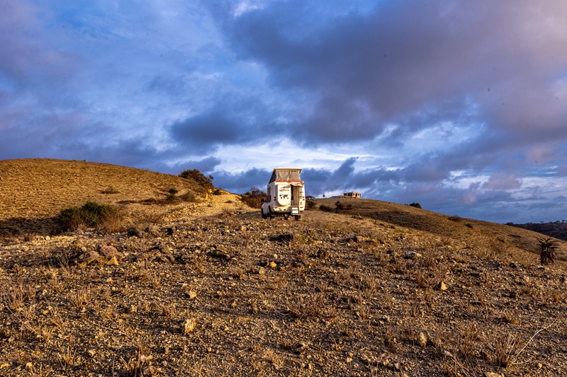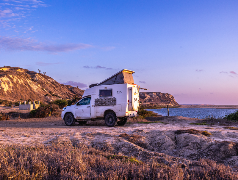 Un peu plus au nord, nous trouvons un bivouac solitaire au-dessus de la mer.