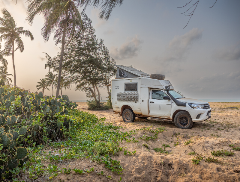 Bivouac sur le parking d'un restaurant, sur une des plage d'Accra