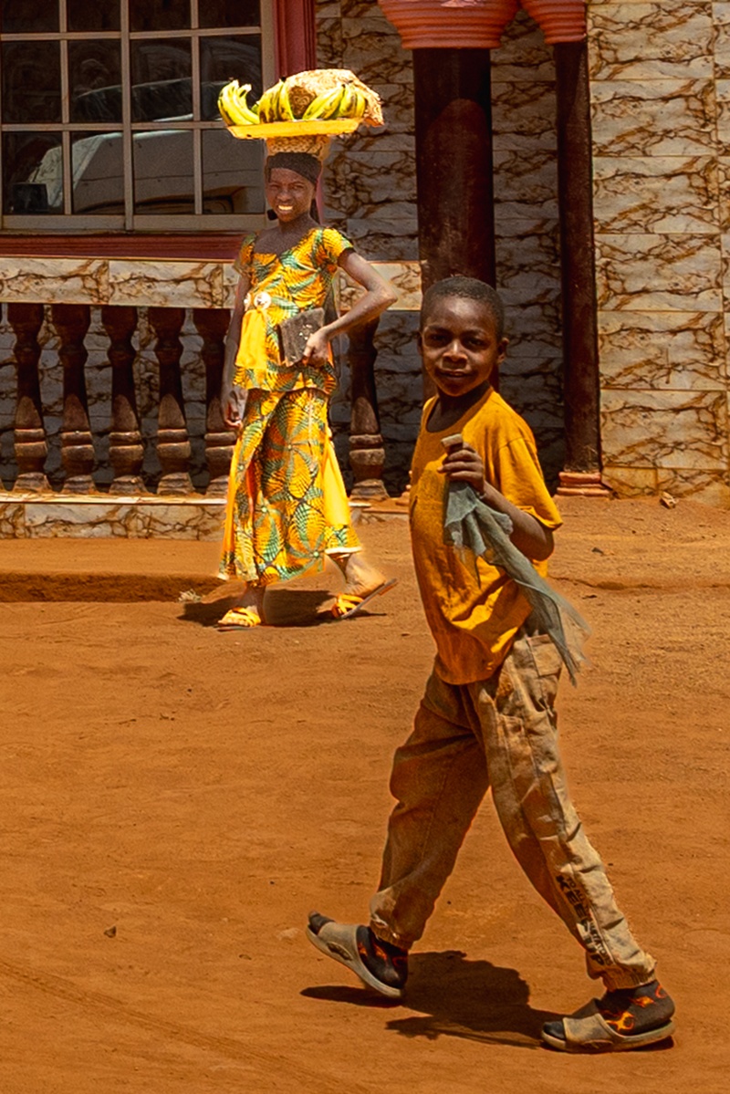 Des gamins défilent dans la rue, curieux et attirés par notre présence inhabituelle.
